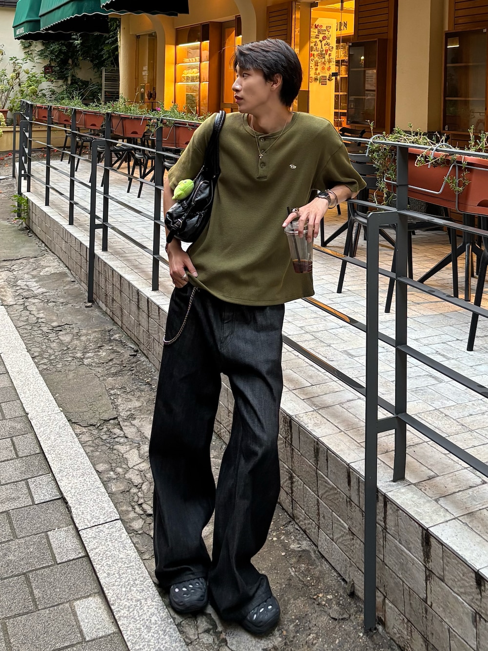 HarutoのTシャツ/カットソー「ワッフルヘンリーネックワンポイント刺繍Tシャツ」を使ったコーディネート