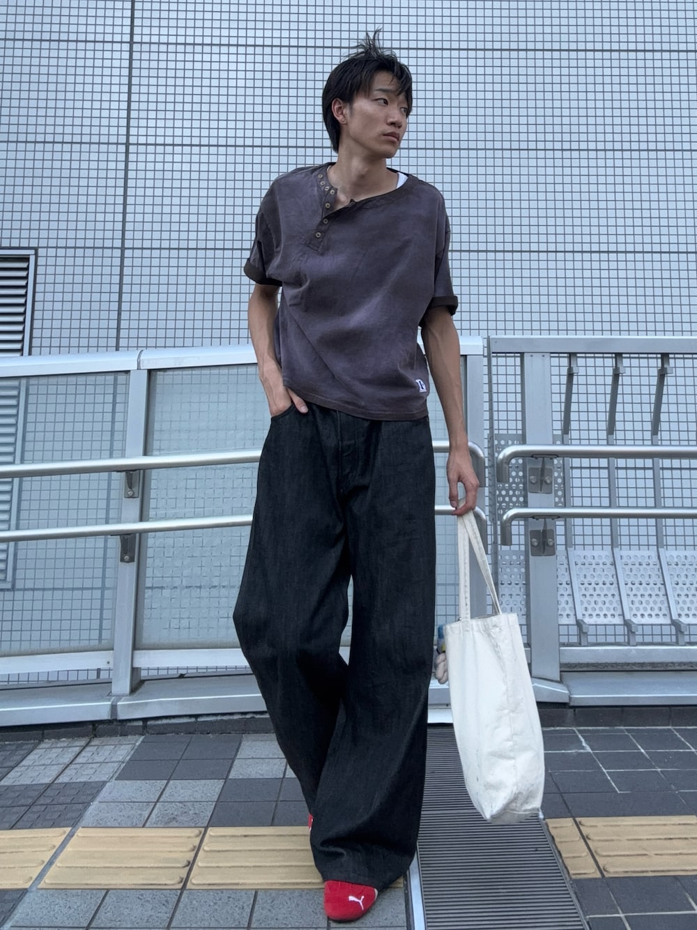 HarutoのTシャツ/カットソー「【EPNK】Asymmetry henry neck tee / アシンメトリーヘンリーネックtee」を使ったコーディネート