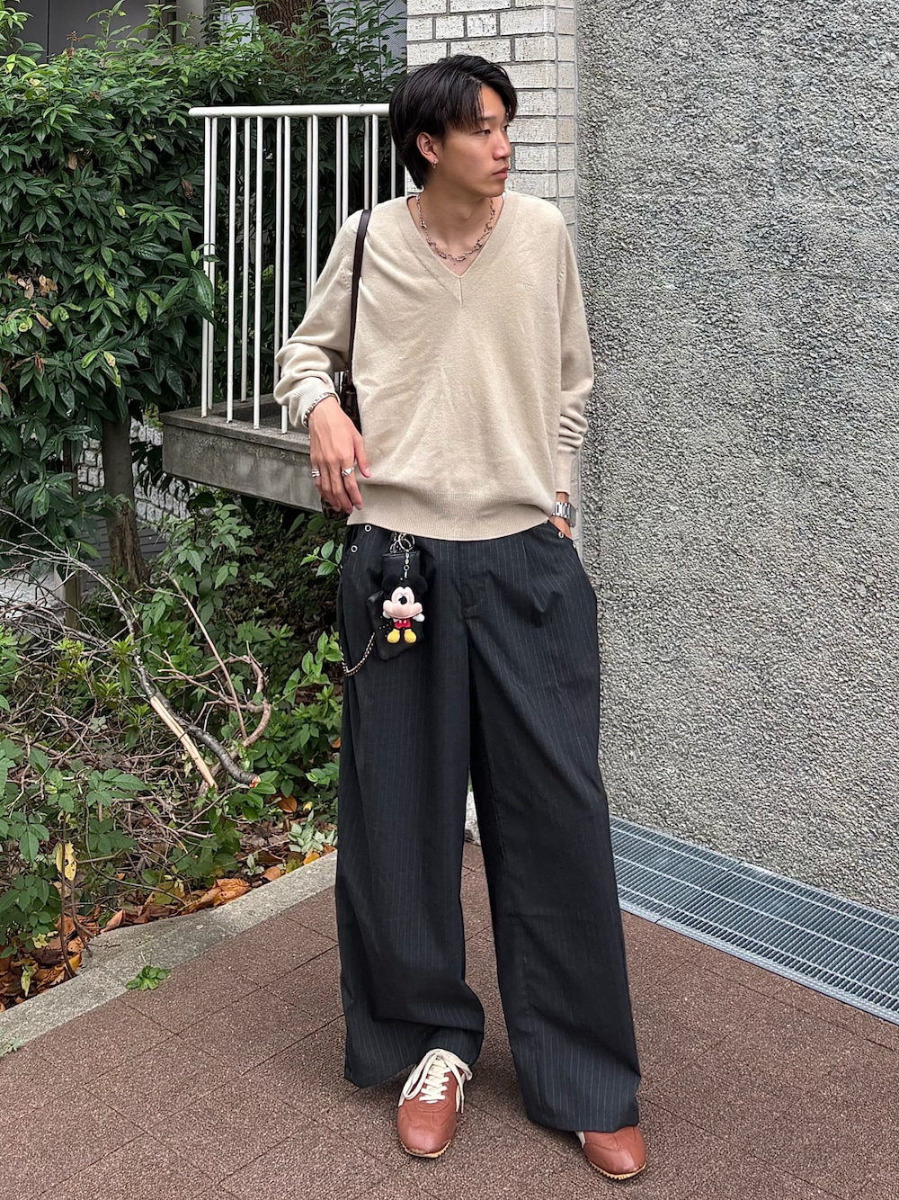 Harutoのスラックス「【セットアップ対応】Eyelet-Detail Two-Tuck Wide Slacks / ハトメデザイン2タックワイドスラックス 【新色追加】」を使ったコーディネート
