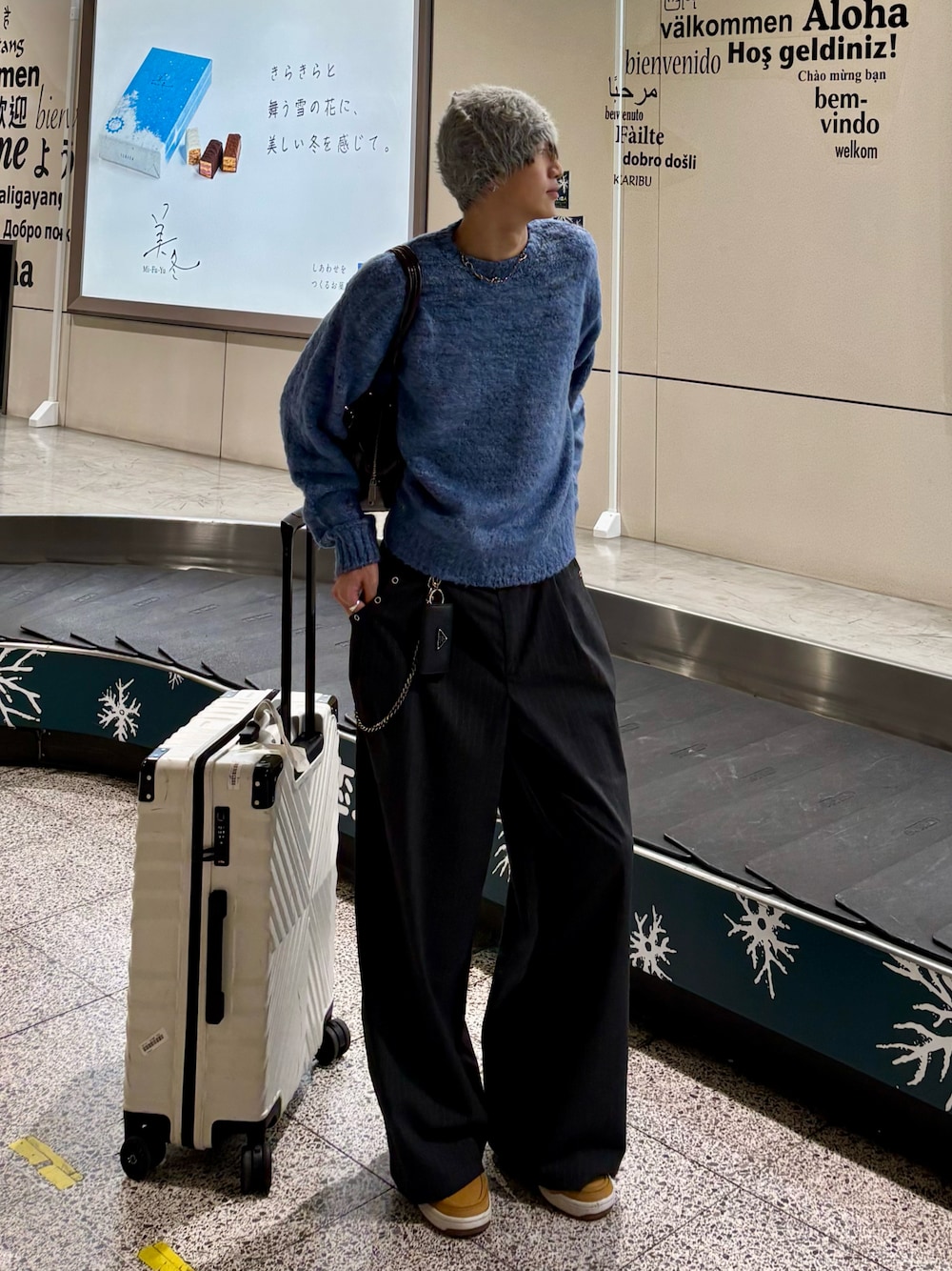 Harutoのニット/セーター「モヘアタッチ ミックスカラー クルーネック シャギーニット」を使ったコーディネート