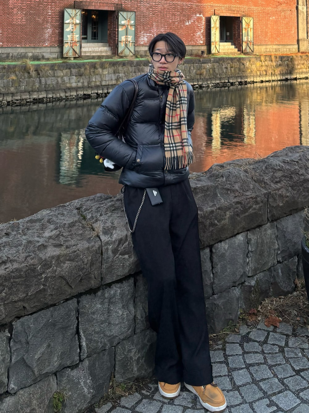 全体を黒でまとめて、マフラーと靴で色を拾ったよ👍🏻 参考になったら嬉しいです🙌🏻 Instagramも頑張ってます🔥 Instagram:h___180___rt tiktok:h___180___rt