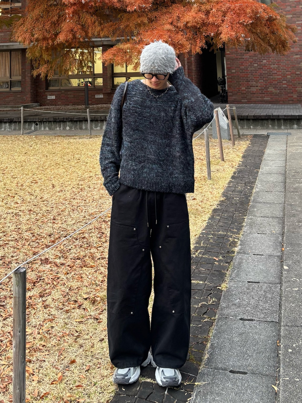 Harutoのニット/セーター「モヘアタッチ ミックスカラー クルーネック シャギーニット」を使ったコーディネート
