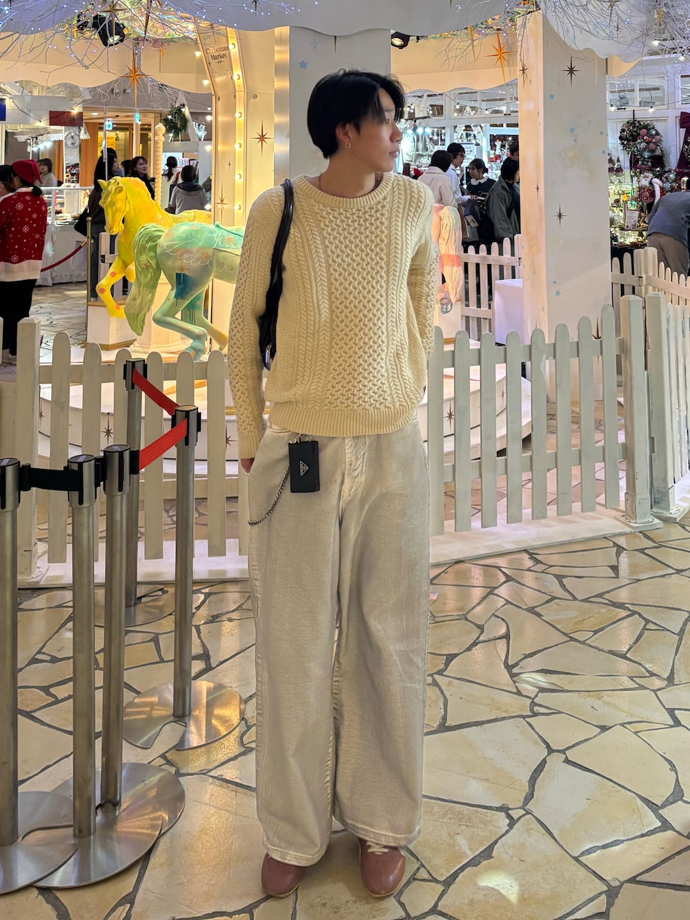 Harutoのニット/セーター「SC: "garment dyed" ミドルゲージ ランダム/アラン クルーネック ニット□」を使ったコーディネート