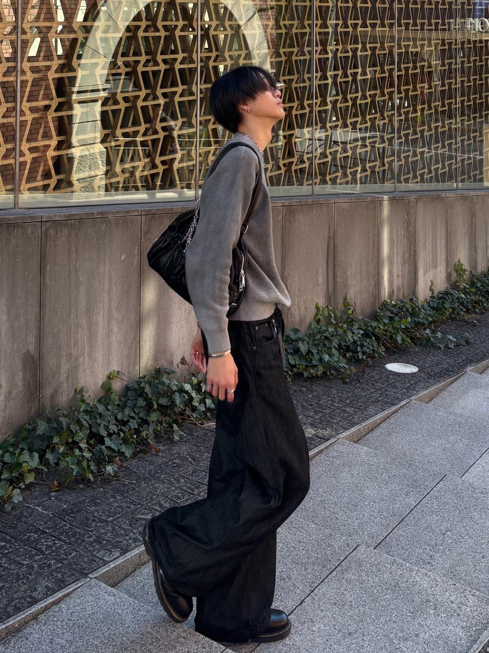 Harutoのニット/セーター「ヴィンテージスプレー加工 グラデーションオーバーサイズクルーネックニット」を使ったコーディネート