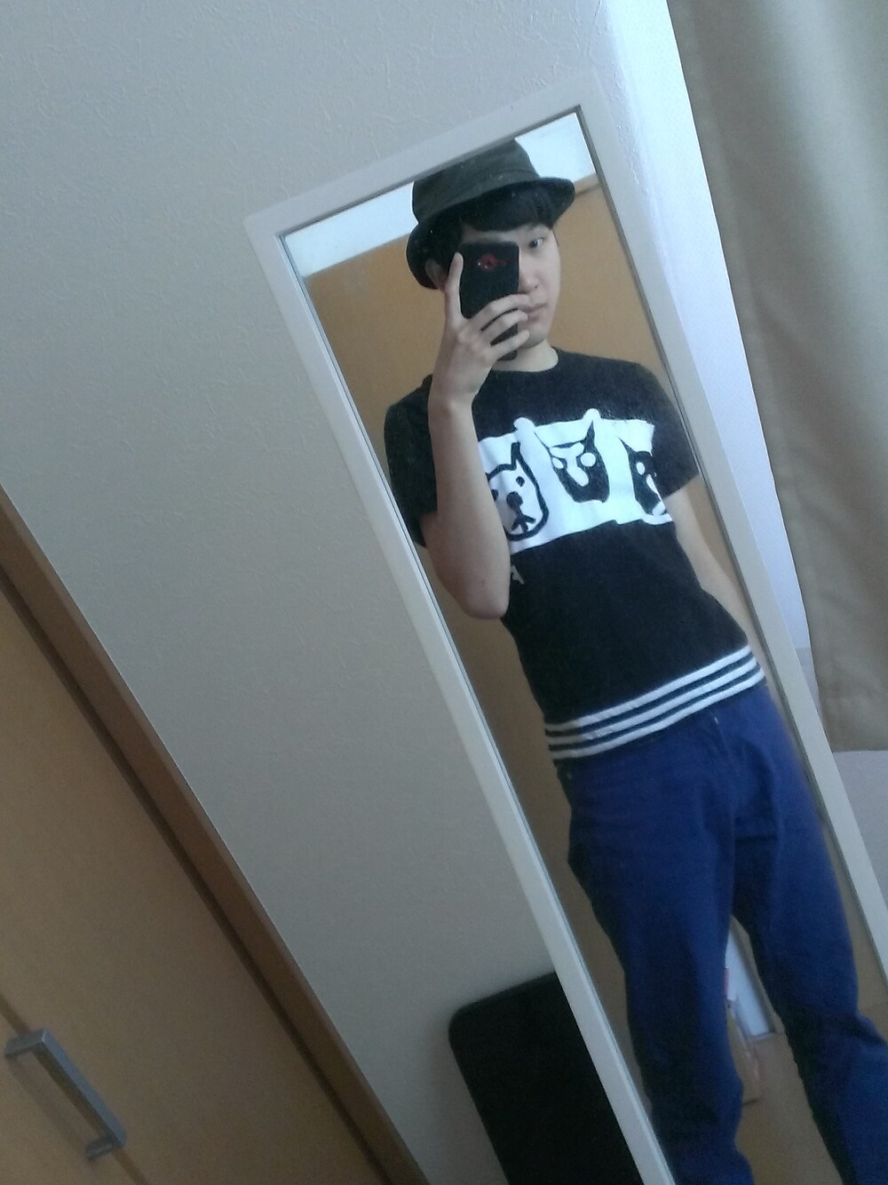 お久し振りに投稿します。 お気に入りの犬イラストT!! ブラックコム・デ・ギャルソンでーす 普段ドメブラには手を出さないんですが、犬好きな彼女からのプレゼントなので愛用してます(^^) フレペのバケットハット被って、犬Tだけに犬の散歩にいきます(笑) 帽子被らないとカモメのう〇こ攻撃喰らいますからね(--;)