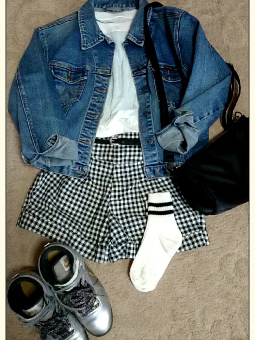 outer:used inner:LOWRYS FARM bottom:LOWRYS FARM bag:PORTER shoes:NIKE ギンガムチェックを 小物でスポーティーに。 写ってませんがこれに ニット帽かぶってました。