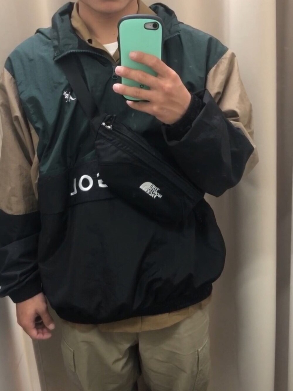h5omy《相互》のナイロンジャケット「【WEB限定】Discoat×KANGOL 別注切替ナイロンアノラック」を使ったコーディネート