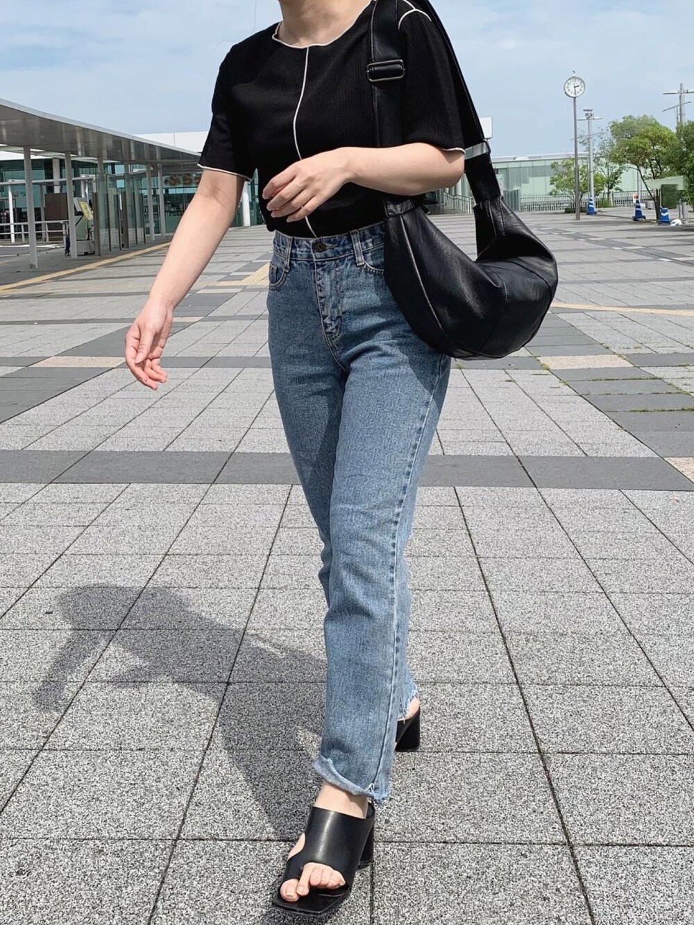 Dukkahさんからご提供頂いた、配色メロウT🫶🏻 凄く大人っぽくて涼しい素材です🫢 デニムとサンダル合わせがタイプでした💖 Instagram⇨ruun_ruuun