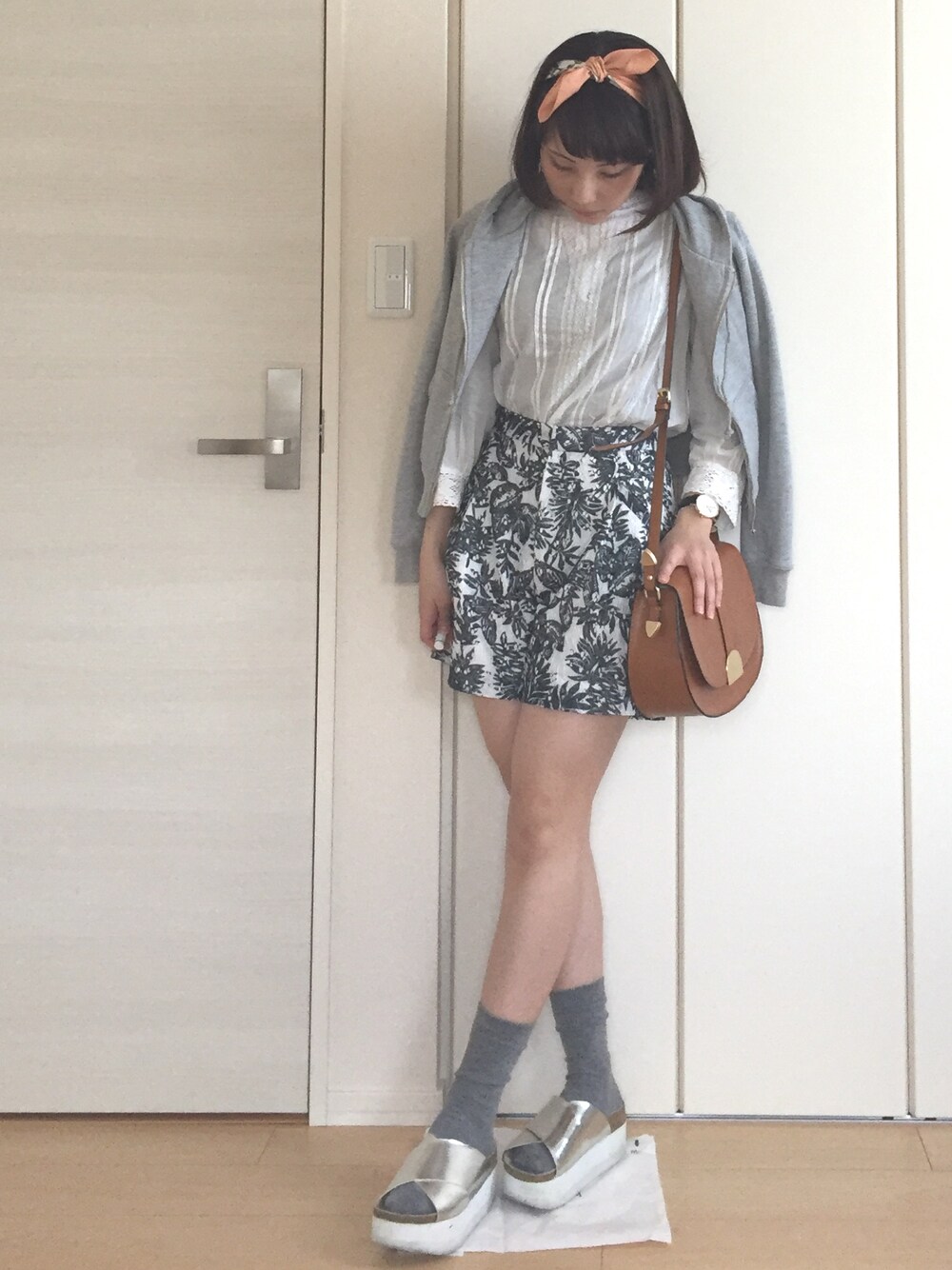 私服show♩ 今日はブラウスにボタニカル柄のショートパンツを合わせてみました😄🌟 元々ショートパンツがハイウエストなので、さらにブラウスをインして少しでも足を長〜く(笑) そして今年初のサンダルデビュー💓 シルバーで一見奇抜にみえるけど、意外に 馴染みが良くてなににでも合います😎✨ パーカーは肩からはおってトップスのレースを カジュアルダウン🎶 頭につけたスカーフはGUで500円台で購入❤️ そして気付けばほぼ全身mysticでした〜👠✨ 今日も❤️、セーブ、コメントありがとうございます😳💓 ではでは😎✨