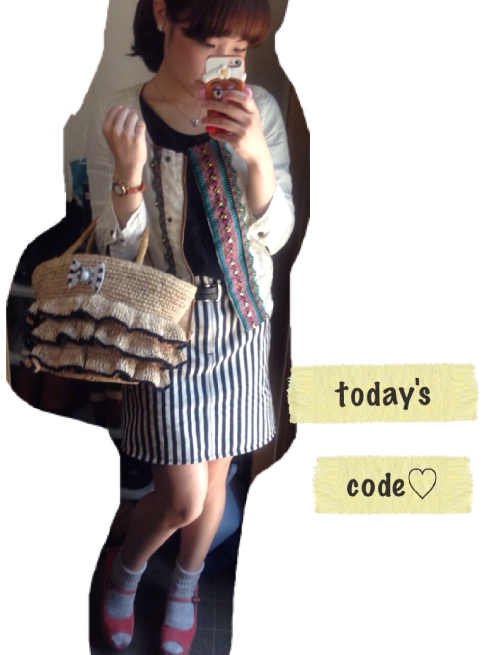 私服show♪ ジャケット…AnotherEdition プルオーバー…mystic インナー…mystic スカート…mysty woman 靴下…tabio サンダル…mystic かごバック…joujou(AnotherEdition) 今日はどんより天気から一転! めっちゃ暑い〜(o_o) 全体的にベーシックな色合いで、 ポイントにピンクのサンダルを。 ではでは♪( ´θ`)ノ
