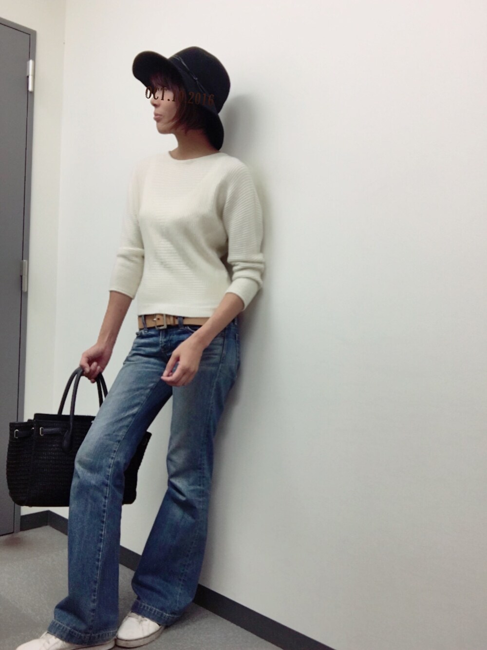 こんにちは(=^^=) 今日の出勤コーデです♪ 今日はUNIQLO&LEMAIRE のニットを使った シンプルなデニムコーデです( ¨̮ ) 昨年のニットですが 着やすいシンプルなデザインなので 今年も活躍をしそうです(〃▽〃)