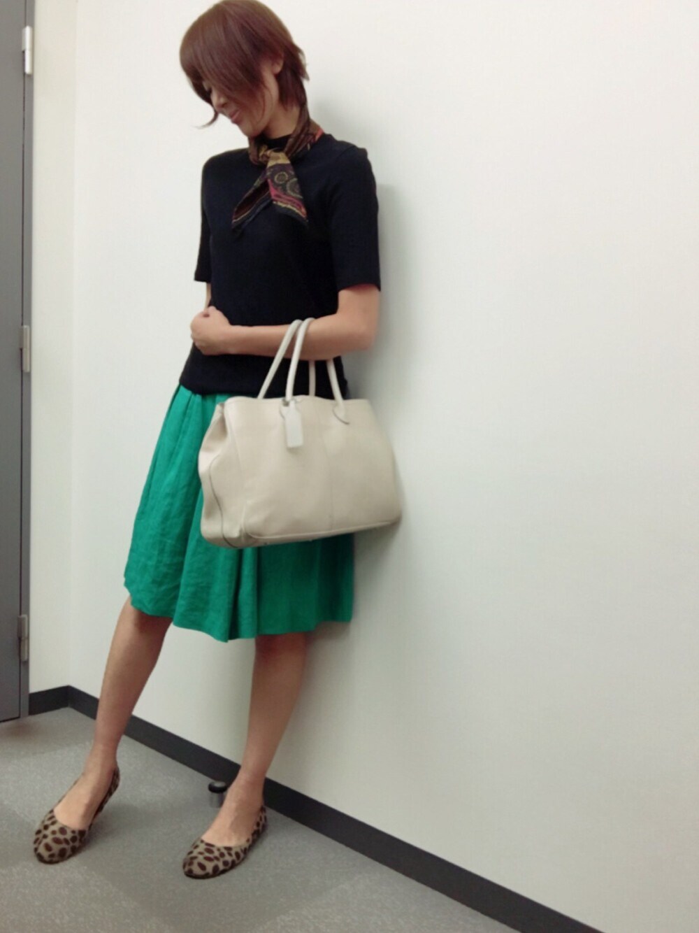 こんにちは(*´∀`) 今日のコーデは レオパード柄をアクセントにしたスカートコーデです♪ レオパードは上半身だと目立ってしまいますが、下半身の方に持っていけば違和感なく普段コーデにも使いやすいですね♪ 今日はグリーン&ヒョウでジャングルぽいかも(〃▽〃)