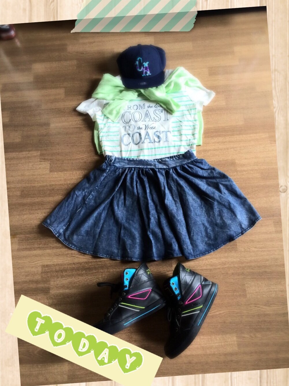 スカートっぽいけど中は分かれてて丈を気にせず履けます( ^ω^ ) ごつめスニーカーは履きやすくてお気に入りだし、脚細く見せれるかなヽ(;▽;)ノ キャップもつけて元気コーデです♡
