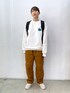 身長165cm 普段の着用サイズ TOPS:M.L PANT:S.M 写真アイテムサイズ SWEAT:M PANT:32inch 季節が感じられるスウェットを着用しました!カラーホワイトなのですが他のカラーリングが可愛くて悩んでしまいました( ¨̮ ) サイズ感はMサイズでお尻に少しかかる程の丈感です。パンツは丈感と幅は少し大きめでダボッと履く事ができますが女の子はベルトをした方が良いと思いました!
