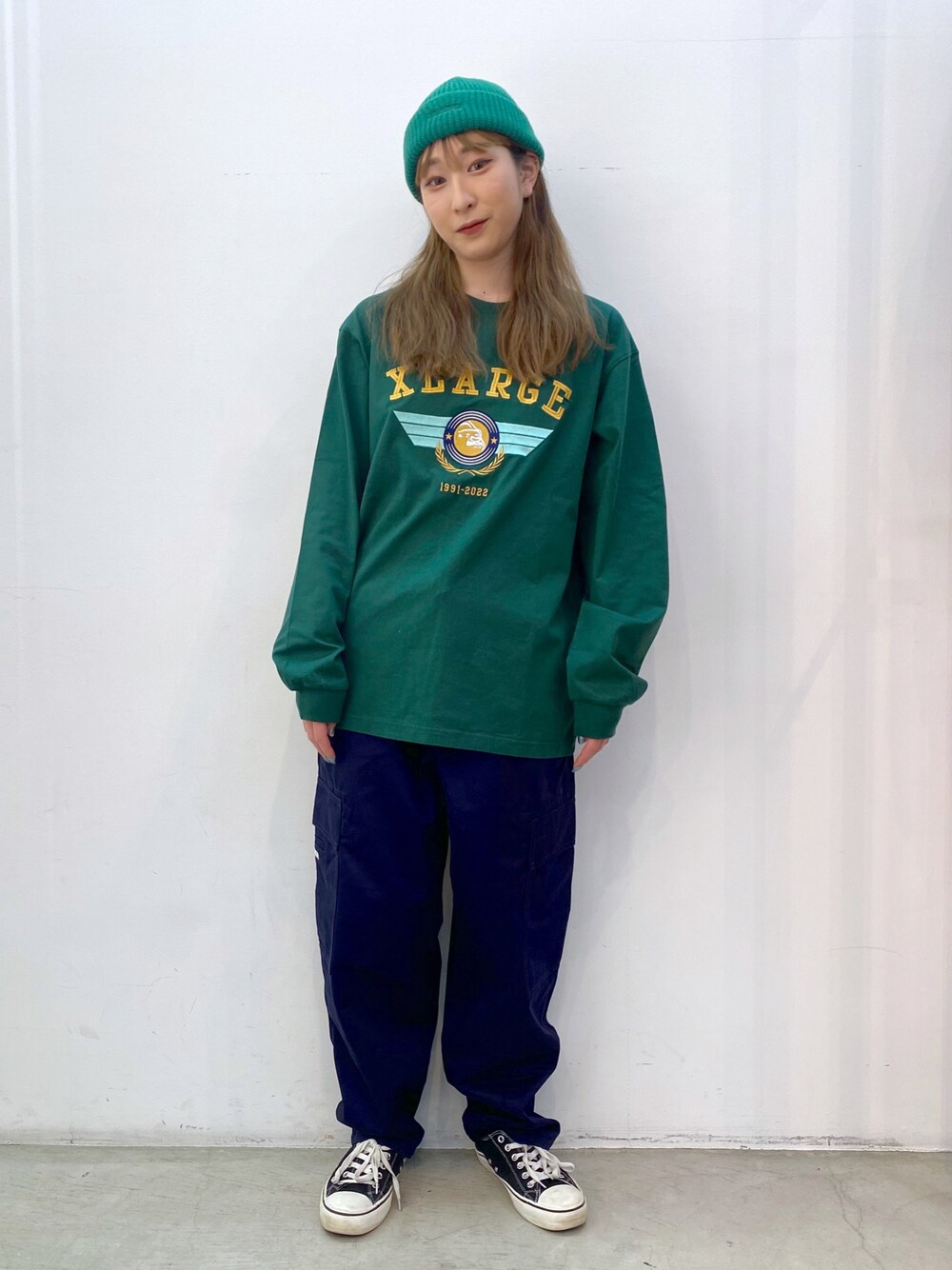 Hinako( XLARGE/X-girl新潟(XLARGE))のキャップ「LOGO SHORT LENGTH BEANIE」を使ったコーディネート