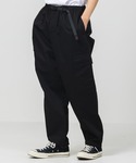 身長165cm 普段の着用サイズ TOPS:M.L PANT:S.M 写真アイテムサイズ TEE:M JACKET:L PANTS:M GRAMICCIコラボのパンツMサイズで着用しました。 ベルトが付いていてウエストの心配することなく気軽に吐く事ができますし、シンプルなのでどんなトップスにも合わせやすかったです。写真の見た目固そうな生地質ですが柔らかくてとても膝を曲げやすかったですよ!