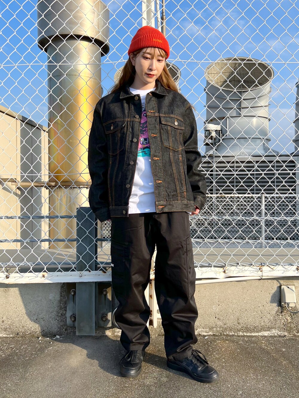 Hinako( XLARGE/X-girl新潟(XLARGE))のキャップ「LOGO SHORT LENGTH BEANIE」を使ったコーディネート