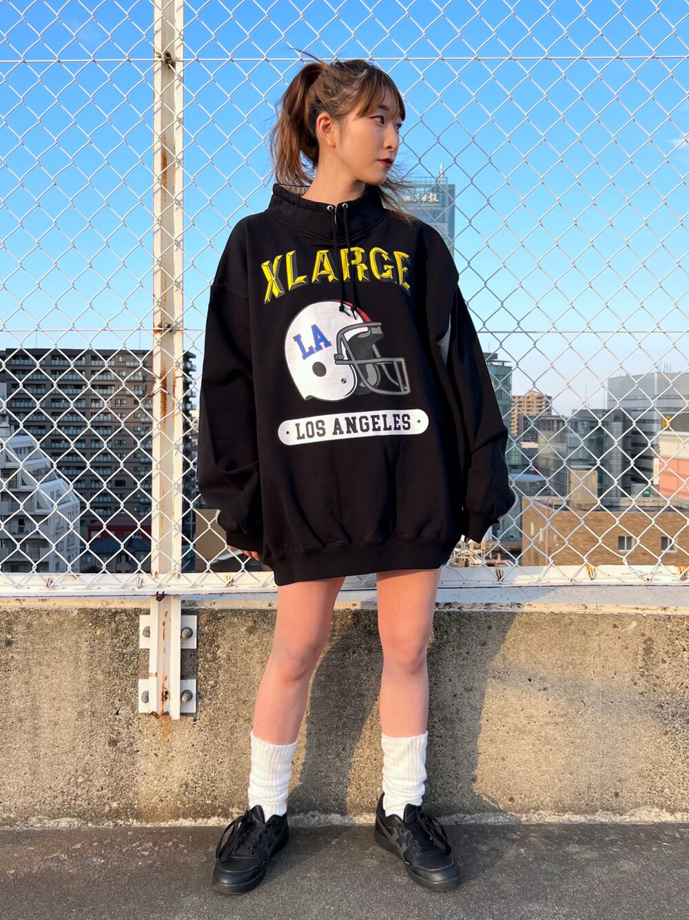Hinako( XLARGE/X-girl新潟(XLARGE))のスウェット「FOOTBALL STAND COLLAR SWEAT」を使ったコーディネート