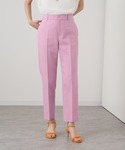 【スムースフリルペプラム プルオーバー】 コットン100%のさらっとした肌ざわりのカットソー。 しなやかでストレッチ性のある柔らかい素材感。 裾のペプラムがシンプルになりがちな、カットソーのスタイリングを華やかに演出してくれます。 身幅には程よいゆとりがあり、ヒップにかかる着丈なのでウエストアウトした着こなしがお勧め。 【リネンブライトクロスクロップドパンツ】 麻混の清涼感がありシャリっとした質感のパンツ。 ハイウエストでセンタープレスがしっかり入っているので、すっきりとスタイルアップして見せてくれます。 また、程よく腿回りにゆとりがあるので体のラインを拾わないサイズ感で、 ウエストゴムが快適にご着用いただけます。 ベージュやネイビーはきちんとしたシーンに重宝し、ピンクは春から夏にかけてスタイリングのポイントに取り入れたい明るいカラーです。