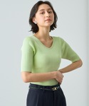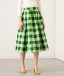 ・アセテートポリエステルVネック カーディガン ・アセテートポリエステル半袖 プルオーバー さらっとした柔らかい肌触りのアンサンブル。 カーディガンは深めのVネックなのでアンサンブルでの着用は勿論、ワンピースやブラウス等中に合わせるトップスを選びません。 身幅は程よくゆとりがあり、腕回りはすっきりめのサイズ感です。 細いリブなのでカジュアルな印象になりにくく、キレイめコーディネートにも相性がいいです。 皴になりにくくイージーケアがこれから秋まで重宝するアイテムです。 ・ビッグギンガムタック スカート イタリアのインポートのチェック生地を使用したフレアスカート。 大きめのチェックが1枚で華やかな印象にしてくれる主役アイテムです。 着丈はミモレ丈なので、サンダルやフラットシューズにも合わせやすいです。 ウエスト周りはすっきりと見えるサイズ感で裾にかけてハリのあるフレアシルエットです。