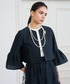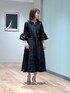 【Calligraphy Collection】 世界最高品質のシルク糸を織り込んだ高密度の生地を使用したシリーズ。 ジャケットは袖に少し透け感がある軽い素材ですが、身頃が2枚仕立てになっているので構築的なシルエットのデザインジャケット。セットのワンピースに合わせるのはもちろん、Teeシャツとデニムにサラッと羽織っていただくなど幅広くこれからの季節に活用いただけます。 ワンピースは、1枚はもっておきたいブラックドレスをデザイン。 縦に切り替えをいれることで、腰回りがすっきりと見えるボリュームの出し方も構築的で大人な印象。 すっきりとしたVネックに同素材の生地をあて、デコルテ部分がスクエアに見えるバランスのよい肌見せ感が上品な1枚。首元の小物アレンジが楽しめそう。