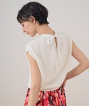 【MID SUMMER COLLECTION 2023】 ・コットンナイロンバックリボン プルオーバー さらっとした質感のコットンナイロン素材を使用しホールガーメントで着心地にもこだわったニット。 さりげない首元のギャザーと首後ろのリボンがフェミニンな印象。 肩先までしっかりかかるフレンチスリーブなので、1枚でも着用しすく、ジャケットやカーディガンのインナーとしても重宝します。 裾にかけて絞りがはいっているので、ウエストインだけでなくアウトでの着用も腰位置を高く見せてくれます。 ・アートフラワープリントダブルタック スカート 程よく厚みとはりのあるコットンのような素材感のポリエステル地を使用。 着心地は軽く、しわにならない万能素材です。 手描きのようなプリントが1枚で主役級のスカート。 ウエストのタックはランダムで入っているので、きちんとしすぎない広がりのあるデザインです。 ニットやTシャツとカジュアルに合わせてもバランスが良く、ブラウスとも相性がいいです。