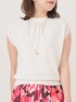 【MID SUMMER COLLECTION 2023】 ・コットンナイロンバックリボン プルオーバー さらっとした質感のコットンナイロン素材を使用しホールガーメントで着心地にもこだわったニット。 さりげない首元のギャザーと首後ろのリボンがフェミニンな印象。 肩先までしっかりかかるフレンチスリーブなので、1枚でも着用しすく、ジャケットやカーディガンのインナーとしても重宝します。 裾にかけて絞りがはいっているので、ウエストインだけでなくアウトでの着用も腰位置を高く見せてくれます。 ・アートフラワープリントダブルタック スカート 程よく厚みとはりのあるコットンのような素材感のポリエステル地を使用。 着心地は軽く、しわにならない万能素材です。 手描きのようなプリントが1枚で主役級のスカート。 ウエストのタックはランダムで入っているので、きちんとしすぎない広がりのあるデザインです。 ニットやTシャツとカジュアルに合わせてもバランスが良く、ブラウスとも相性がいいです。