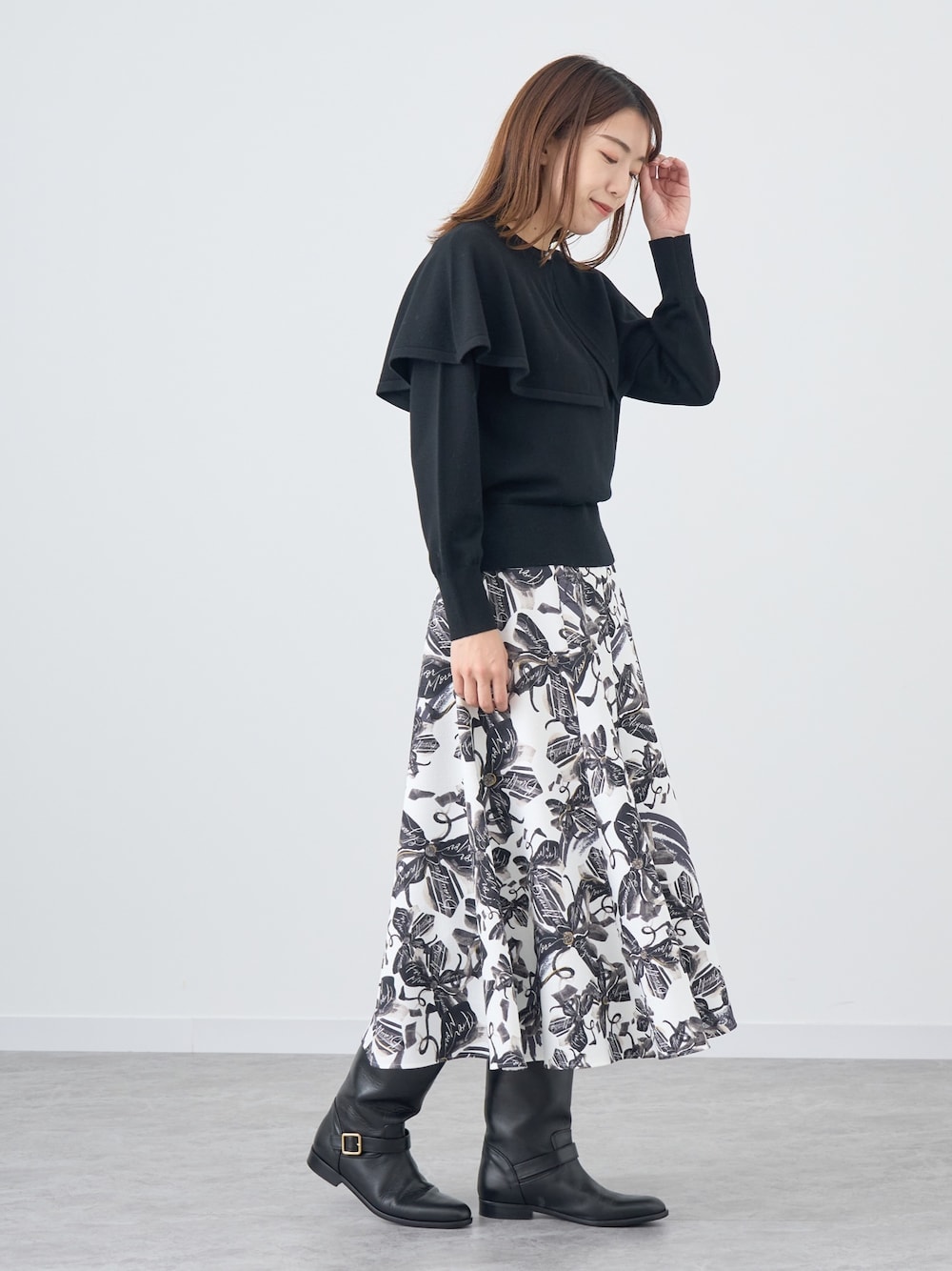 Wake.h(ANAYI )のスカート「アートフラワープリントフレア スカート」を使ったコーディネート