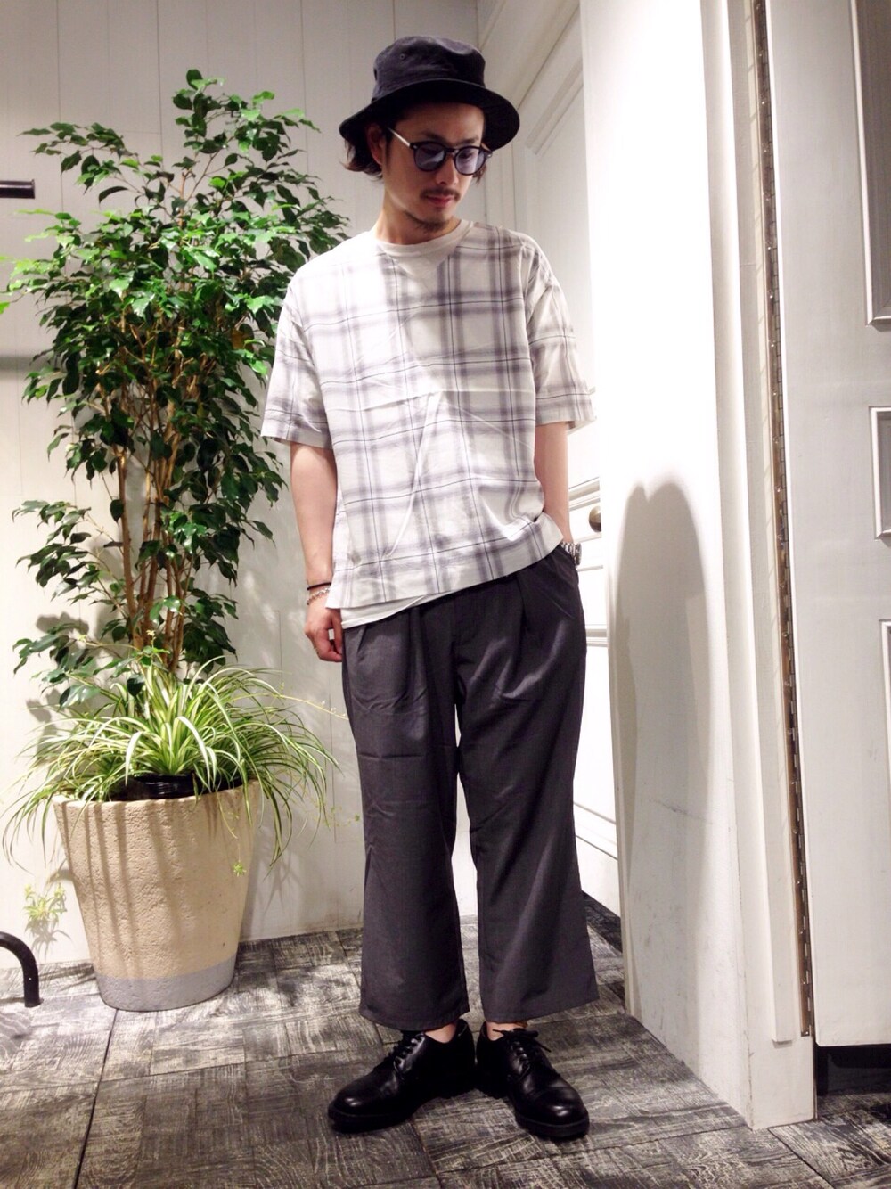 大注目のオンブレチェック!! ワイドパンツで男臭く!!