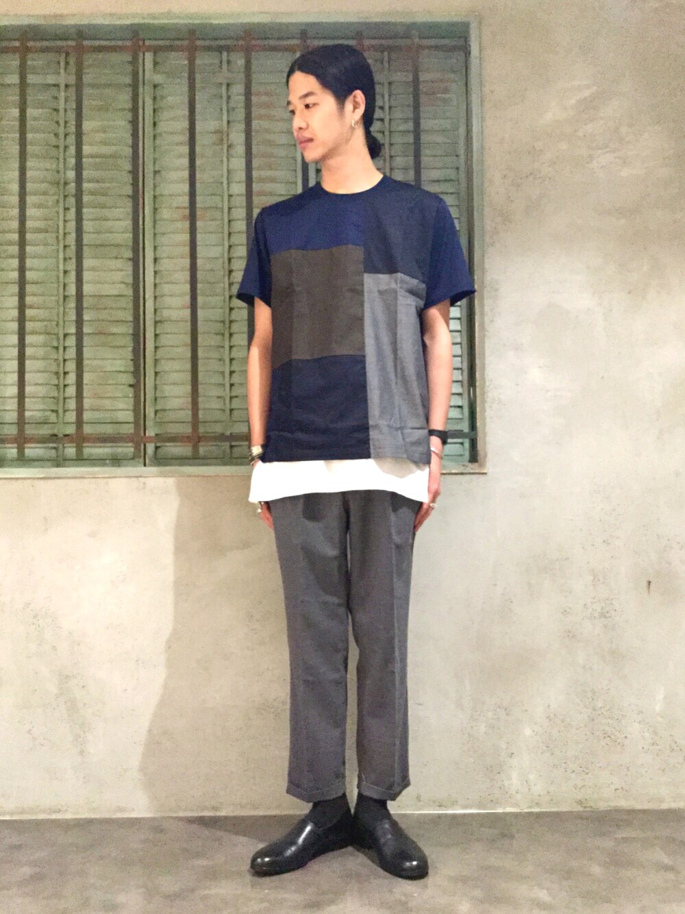 こんばんは。 だいぶ暖かくなりましたね。 本日はシンプルなTシャツスタイルです。 トレンドのブロッキング柄をメインに、クリーンにまとめました。 よかったらぜひ。 KOBAYASHI