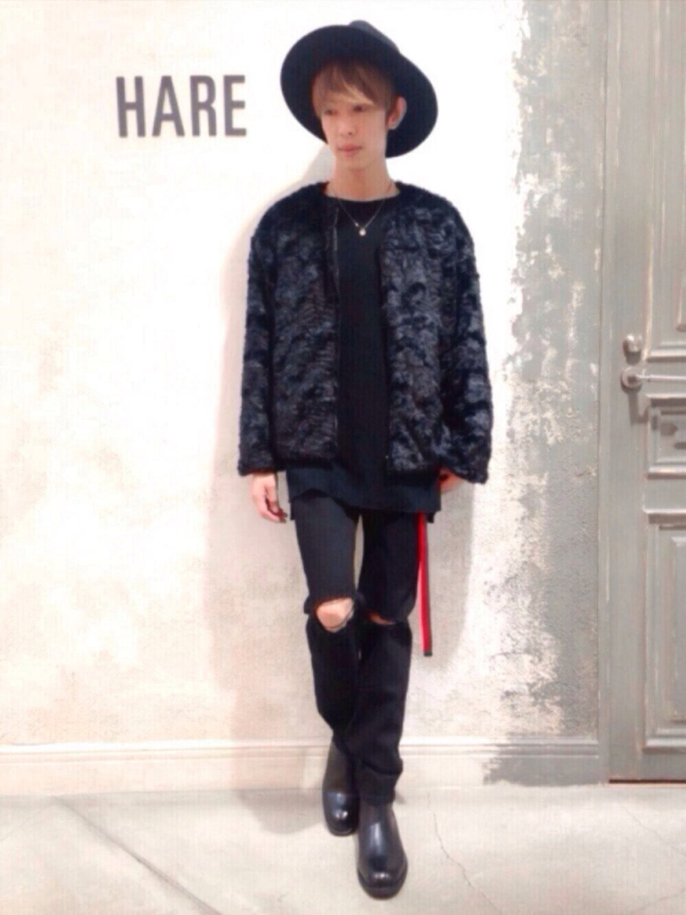 こんにちは!! いつもご覧頂きありがとうございます(^-^) 今日は新作のファーブルゾンを使用したコーディネートです! 今までHAREにはあまり無かった形なのでとても新鮮です!! そしてとっても暖かいですね^ ^ お色は2色展開でもう1色はレオパード柄のかなりインパクトのある見栄えなのですが今日の所は黒で合わせてみました!^ ^ 色によって少しデザインが違うのですが黒はファーの毛足の向きがランダムになっていて写真では伝わりにくいのですがこちらも単色でインパクトのある仕上がりとなっております(^-^) モード感のあるオールブラックで着てみました!!^ ^