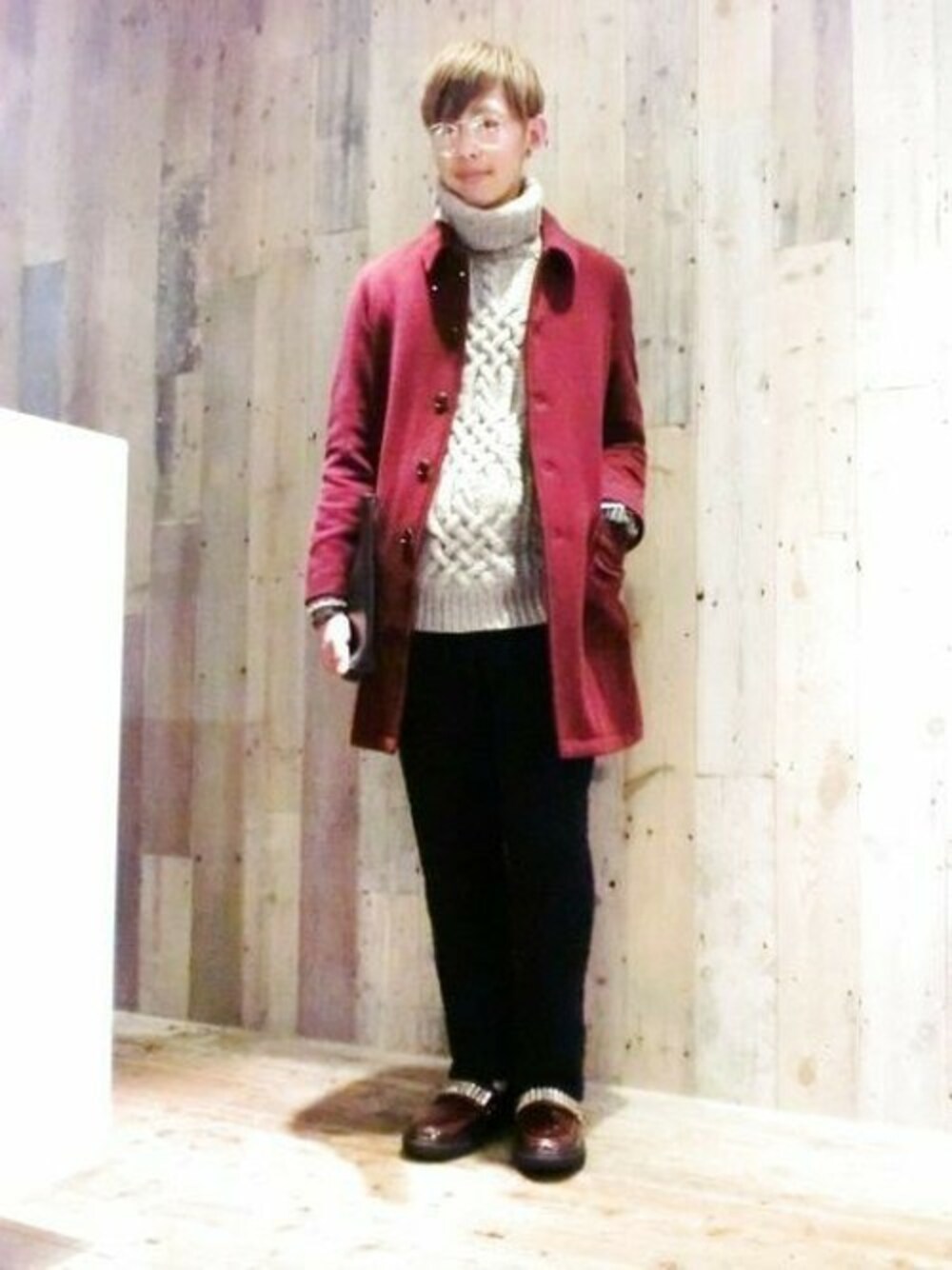 ボアのパンツがゆるい雰囲気ですが 他をきれいな雰囲気のアイテムで合わせて 上品な印象にしました!