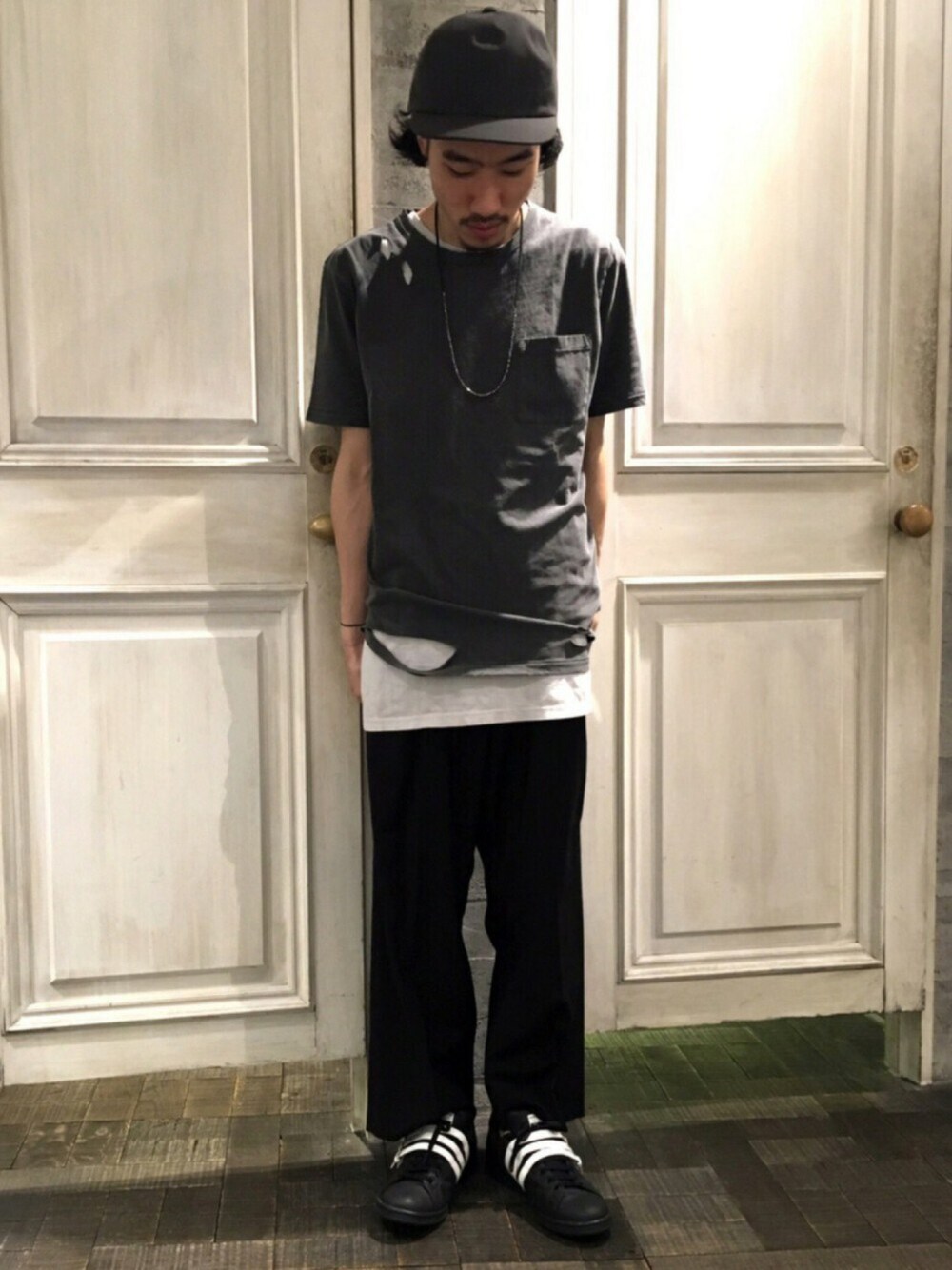こんにちは、現在HARE天王寺ミオ店の青木です! いつもご観覧頂きありがとうございます^ - ^! いいね、SAVE、フォローもありがとうございます^_^! コメントもお気軽にお待ちしています^ - ^! 本日のテーマ、穴あいてます^ - ^! 本日はモード、ストリートの要素を使いダークトーンでまとめました^ ^! クラッシュ感の強いカットソーはグランジ感も強くオススメです^ - ^! レイヤードも忘れずにキレイにまとめました^ - ^! 小物はキャップにスニーカーとスポーツテイストに軽くいたしました^ ^