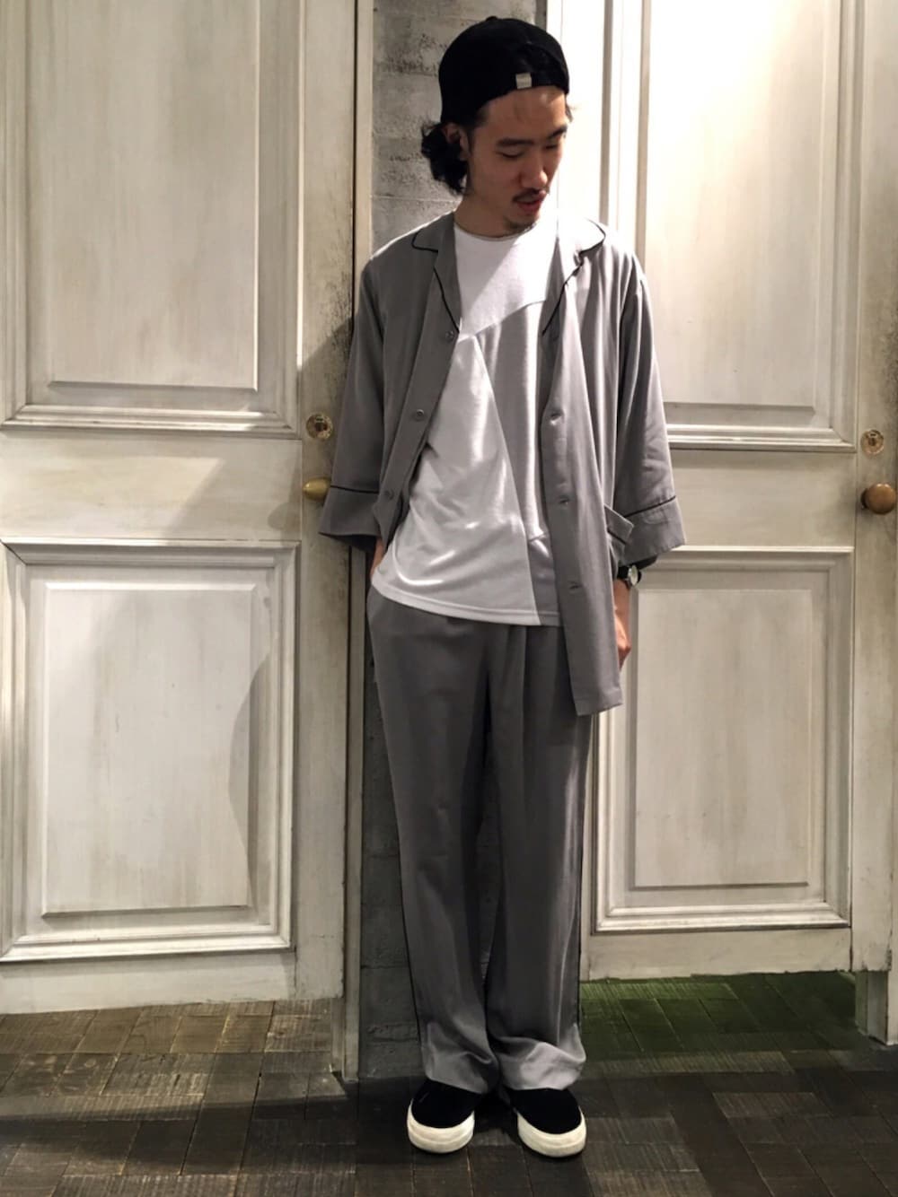 こんにちは、HAREなんばマルイ店の青木です! いつもご覧頂きありがとうございます^ - ^! いいね、SAVE、フォローも沢山ありがとうございます^ - ^!嬉しいです! コメントもお気軽にお待ちしてます!! 本日のテーマ、またまたグレー^ - ^! 本日は先日も一回着用したパジャマシャツ、パンツのグレーversion! シルエットもさながらデザインもパイピングが入り凄く雰囲気のあるセットアップ^ - ^ インナーは定番のブロッキングのカットソーで軽さを出し、小物はキャップ、スニーカーとスポーティーにまとめました^ - ^! 昨日とは違うワントーン、グレーのスタイリングを意識しサイジング、デザイン共に変化を加えました^ ^! 明日からはしばらくなんばマルイ店にいます^ ^ 更新予定です! ちなみに明日は色使います( ̄^ ̄)ゞ!