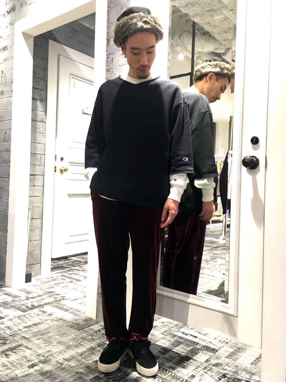 こんにちは、HAREなんばマルイ店の青木です! いつもご覧頂きありがとうございます^ - ^! 沢山のいいね、SAVE、フォローまでありがとうございます^ ^! コメントもお気軽にお待ちしております! 本日のテーマ、ストリートテイスト。 本日はスウェットをメインにしたスタイリング。 スウェットはカットオフタイプとビックシルエットタイプの2つを使用しています。 袖のレイヤードを意識しています。 パンツはベロアのパンツで細めのモノを選んでバランスをとりました^ ^! トップスがルーズで重たかったので今日は細身のパンツを選びました^ ^! 小物はファーキャップとスニーカーでストリートの要素を取り入れて軽く仕上げました( ̄^ ̄)ゞ
