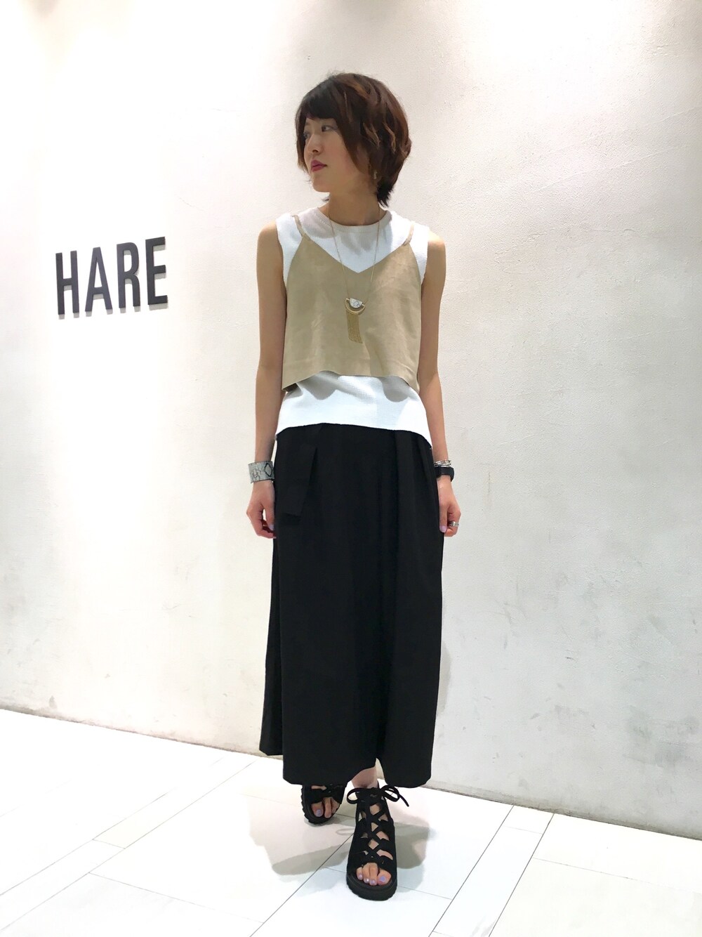 キャミソールのレイヤードスタイルが流行っていますが、HAREでもフェイクスウェードのタイプが入荷しています🙋🏻 フェイクスウェードで短めの丈感なので大人っぽく合わせていただけます。 今回はブラックメインのスタイリングでモードにまとめてみました🌝