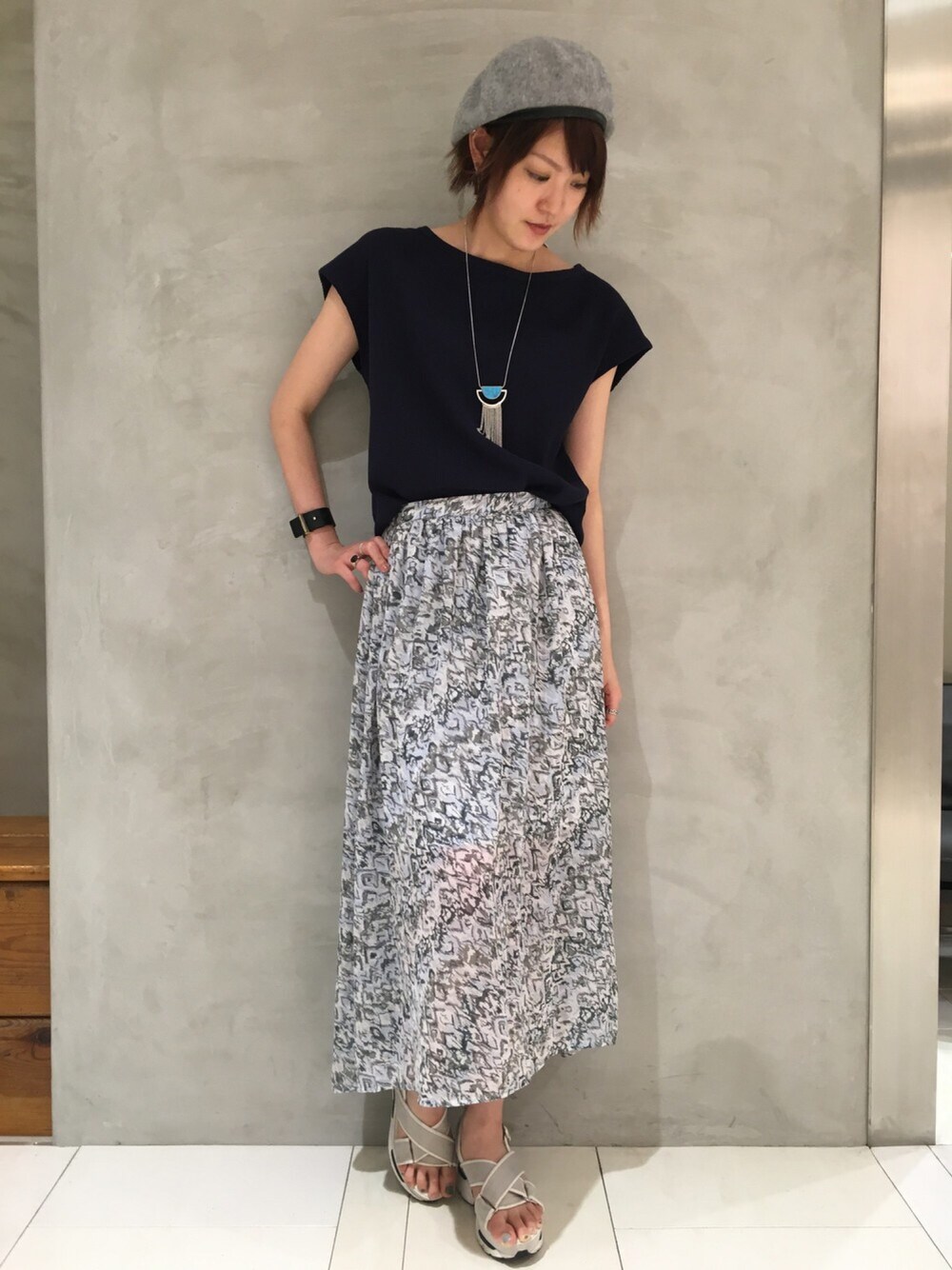 フレンチスリーブのワッフルカットソーを使ったコーディネートです🙋🏻 ワッフルカットソーはジメジメするこの季節もサラッと着ていただけます! 夏らしいカラーと柄で季節感を出しました。 HAREでイチオシのベレー、個人的にもブームきてます😏💕