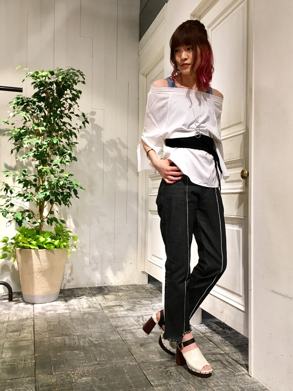 こんばんは! もうすぐGW!初夏!ということで、 白ブラウスにデニムを合わせたスタイリングの紹介です。 今年デニムを履くならリメイク風デニムがオススメです✂️✂️ HAREのリメイクデニムはハイウエストのテーパードシルエット。 センターラインが脚をスッキリ見せてくれます✨ 裾の外側が少し長めなので、シューズにかかるくらいでルーズに履くのもオススメです! GWに向けてどんどん新作入荷していますので、是非お近くのHAREへお立ち寄りください🤗