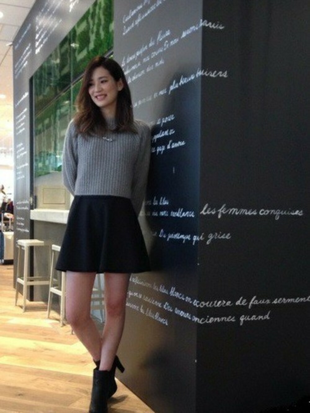 全体的にモノトーンでまとめたコーディネート☆ ややユッタリ目なニットをスカートでスッキリ見せました!