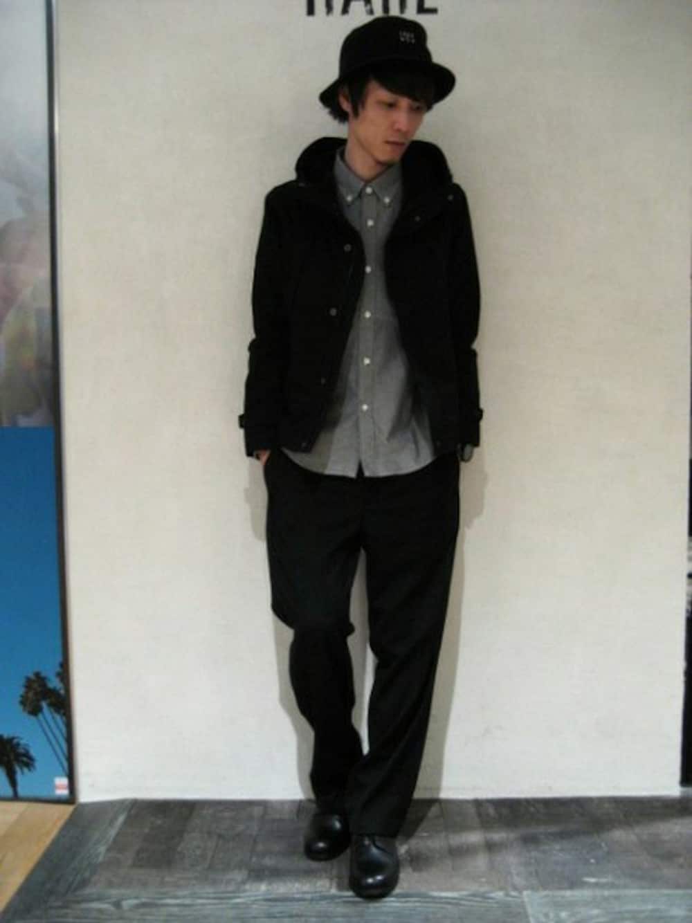 HARE定番のオックスシャツを使ったスタイリングです! キレイめ仕様のシャツをマウンテンパーカー+スラックスでコーディネート!! スタイリングに変化を出したい方にオススメです!