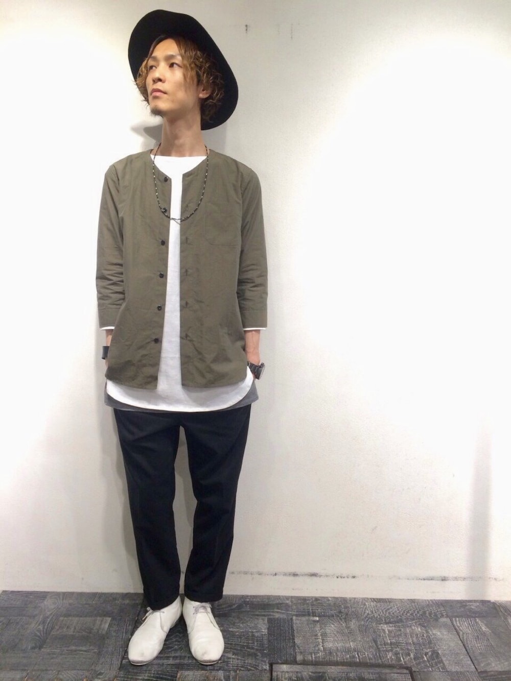 ノーカラーシャツの新作を使ったコーディネートです◯ 渋めのカーキがスタイリングに良い味を出してくれますね! 夏に向けて明るめのカラーが増えていきますが、カーキも鮮度があってかっこいいですよね^^ ぜひ季節感を先取りしたスタイリングを皆さんも^^