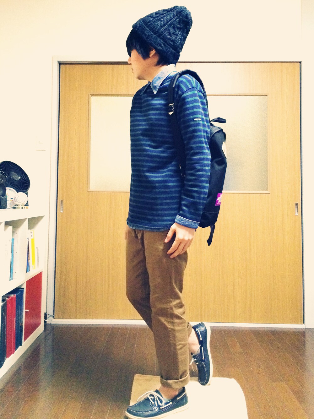 シャツ:FIVE BROTHER シューズ:Danassa x green label relaxing 久しぶりのSAINT JAMESコーデ♪ リバーシブルのボーダーシャツ欲しかったなぁ。
