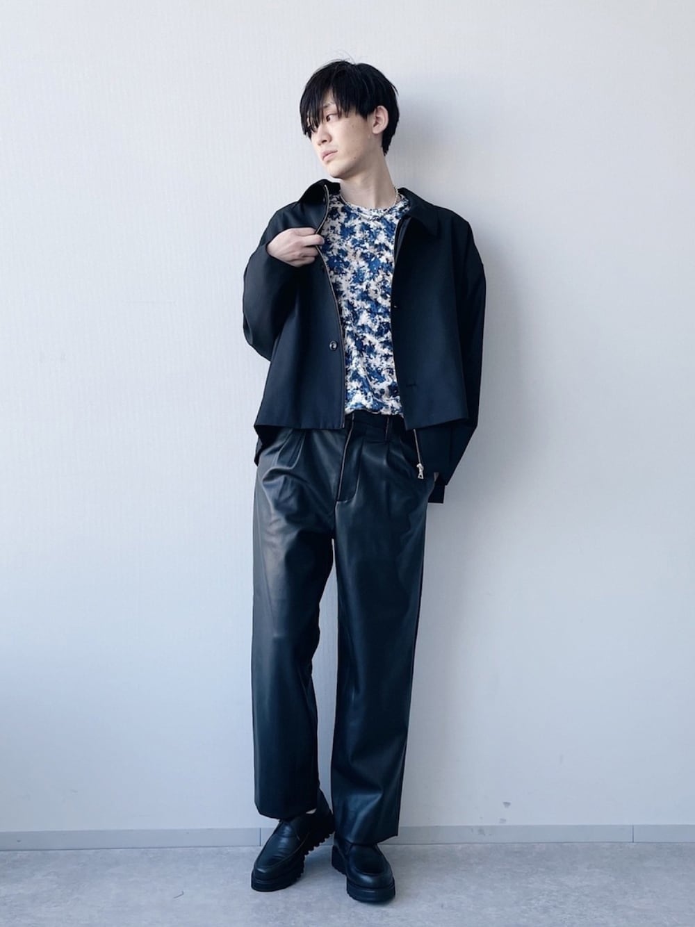 柄をアクセントにしたモードなスタイル。 春もおすすめのレザーアイテム。 【instagram✔︎ @nissy_hare】 こちらも是非チェックして下さい!
