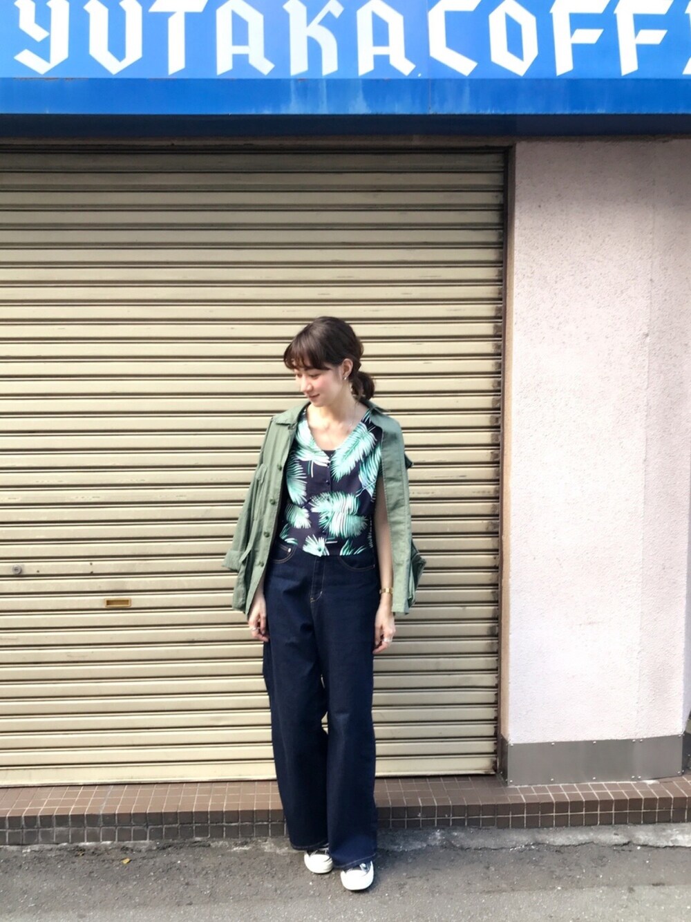 少し前の私服コーデ🤓 アロハ柄シャツが求めやすい価格になりました✨ 気になった方、是非この機会に✨😬 コンパクトのシルエットと少しあいてる首元仕様となり、女性らしく仕上がった一枚です♡ Instagram▶︎@inhhhan