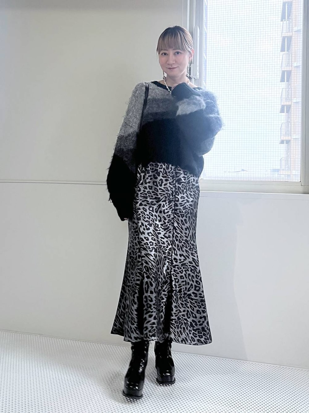 ニット▶︎ グラデーションの色が可愛いです。柔らかくて暖かい素材も◎ スカート▶︎ 程よい光沢感があって、マーメイドシルエットも女性らしいです。柔らかい素材なので着心地も良いです。 シューズ▶︎ 普段24.5cmこちらLサイズぴったりです。 【staffboard】 ☝︎ここからスタイリング一覧見れます◎毎日更新中🙌 【instagram】 ☞@ どちらもフォローをお待ちしております☺︎ㅤㅤㅤ