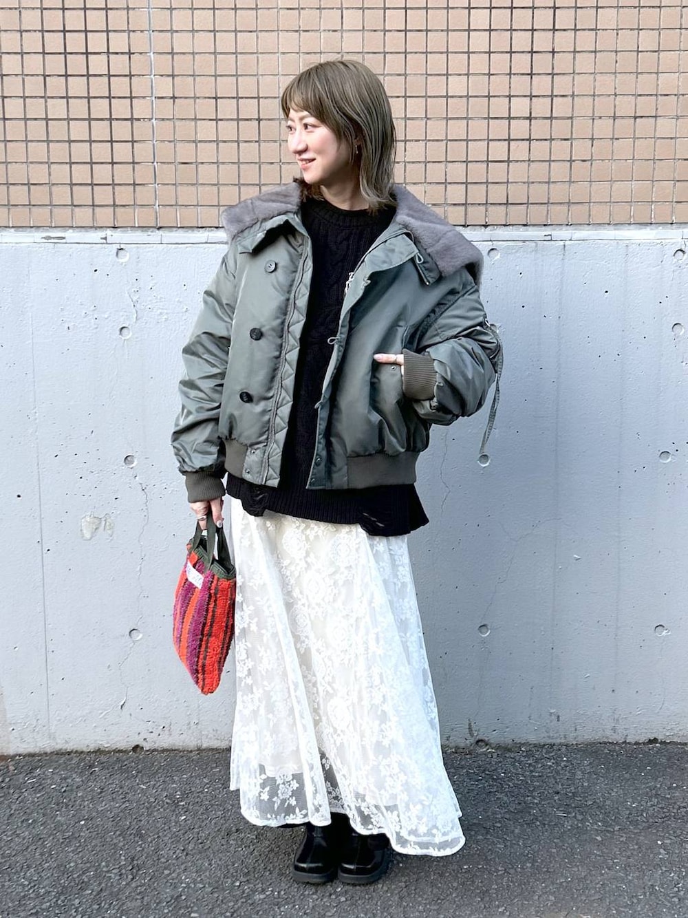 私服コーデ アウター▶︎ 暖かいのでヘビロテ中です!メンズですが、コンパクトなので使いやすいです。 ワンピース▶︎ 繊細なレースデザインでカジュアルアイテムとミックスするのがお気に入りです。 シューズ▶︎ 厚底なので、自然に盛れるのが嬉しいです。普段24.5cmこちらLサイズぴったりです。 【staffboard】 ☝︎ここからスタイリング一覧見れます◎毎日更新中🙌 【instagram】 ☞@ どちらもフォローをお待ちしております☺︎ㅤㅤㅤ