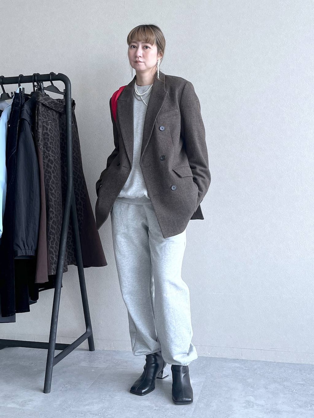 スウェットセットアップはジャケットとヒール合わせて大人カジュアルスタイルに! スウェットはLサイズでゆったりとしたサイズ感が好みです。パンツは大きめだったので、sサイズ着用です。 その他にスウェットパンツの着回しは ジャケット▶︎ メンズアイテム。秋冬に使いやすい微起毛素材です。 シューズ▶︎ スクエアトゥーでモードっぽい雰囲気です!シンプルなので合わせやすいです。普段24.5cmこちらLサイズぴったりです。 【staffboard】 ☝︎ここからスタイリング一覧見れます◎毎日更新中🙌 【instagram】 ☞@ どちらもフォローをお待ちしております☺︎ㅤㅤ