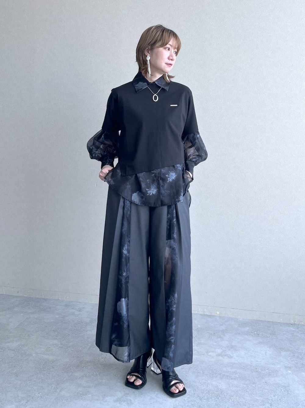 Tシャツ▶︎ 接触冷感の生地で着心地良いです。斜めの裾デザインもさりげなくワンポイントです。 シャツ▶︎ 透け感のあるオーガンジー生地を使用。主張しすぎない柄も合わせやすいです。 パンツ▶︎ フロントの切替仕様で一枚で様になります。膝下から透け感があって軽さも◎ シューズ▶︎ 普段24.5cmこちらLサイズぴったりです。 【staffboard】 ☝︎ここからスタイリング一覧見れます◎毎日更新中🙌 【instagram】 ☞@ 日常生活も投稿してます✨ どちらもフォローをお待ちしております☺︎ㅤㅤ