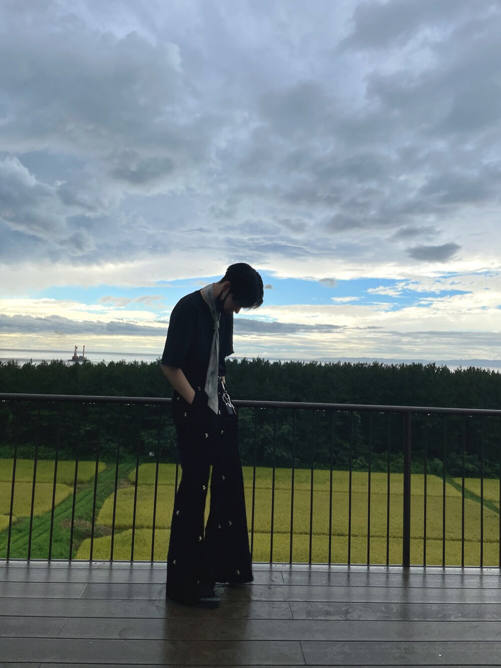 またまたお気に入りのmasu21awのデニムパンツ‼︎とmasuのスカーフ‼︎ 真っ黒にワンポイントがいちばん輝くな〜 インスタきてね〜
