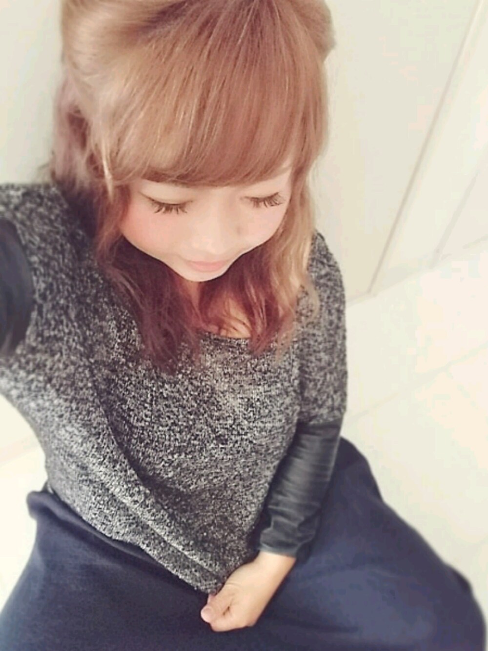 撮り溜めてたやつÜPします😂💓 久しぶりに着たこのニット✨ 薄手になってて、肘下からレザーなってます☺ 波波ウェーブにツイストハースアップ💕